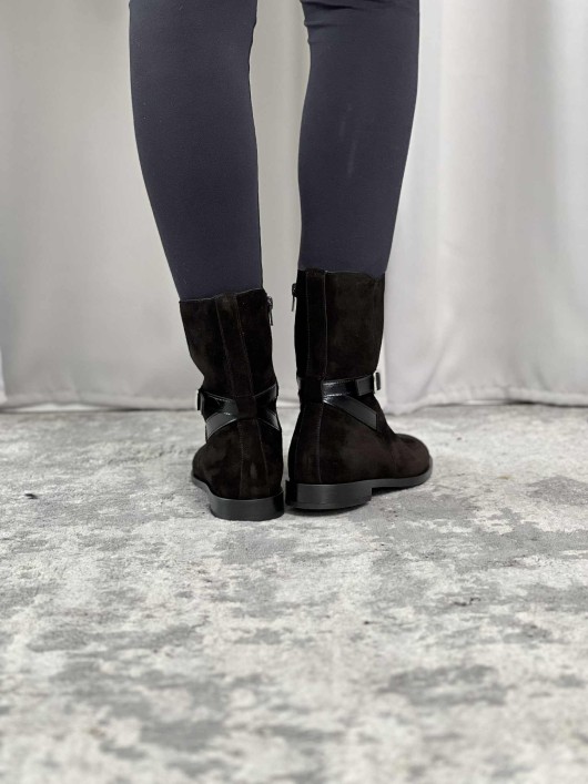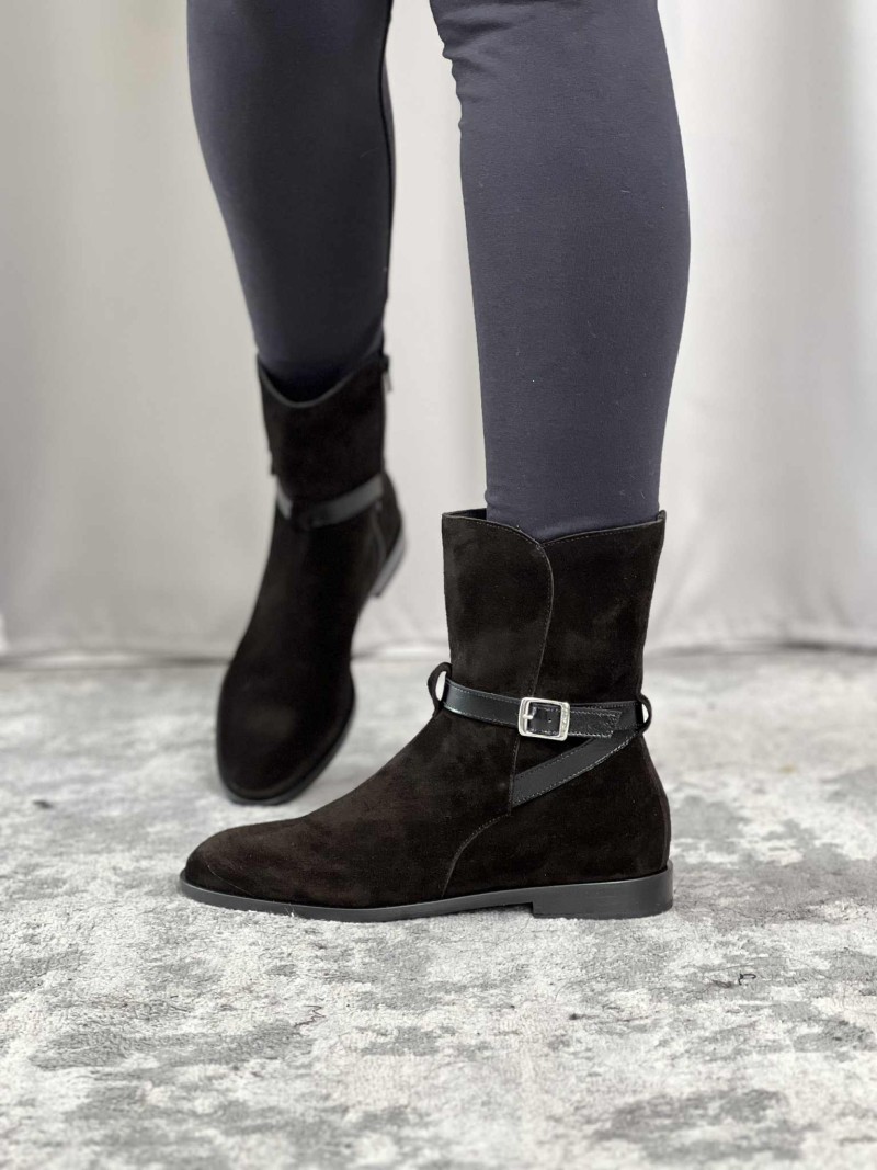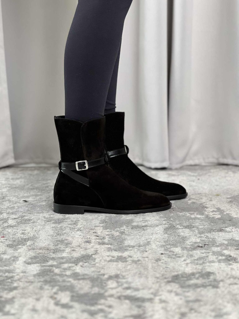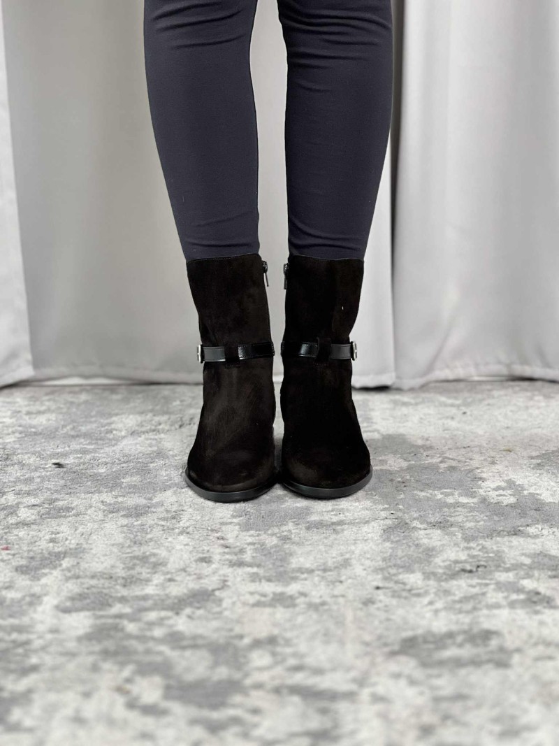 Tronchetto Frau in camoscio color nero con cinturino.