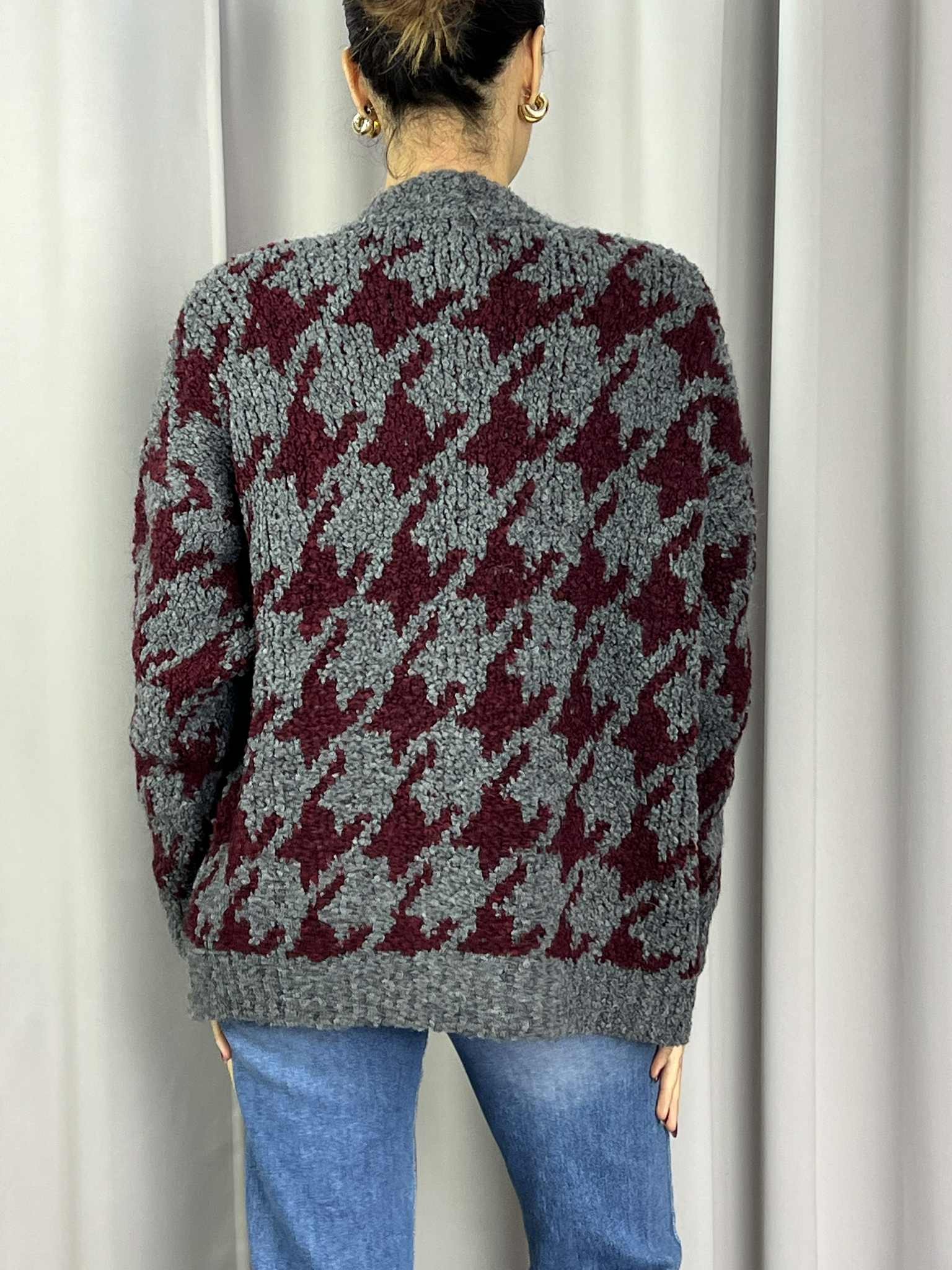 Cardigan Susy Mix color Grigio-Bordeaux.