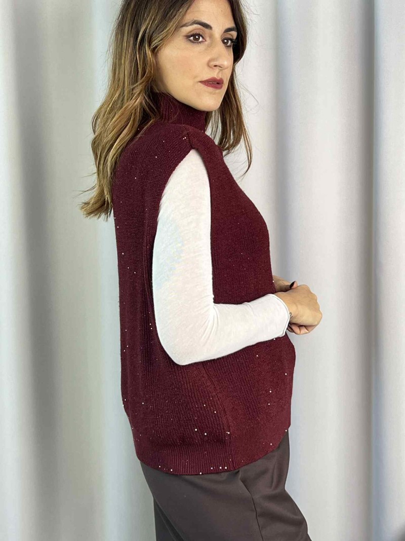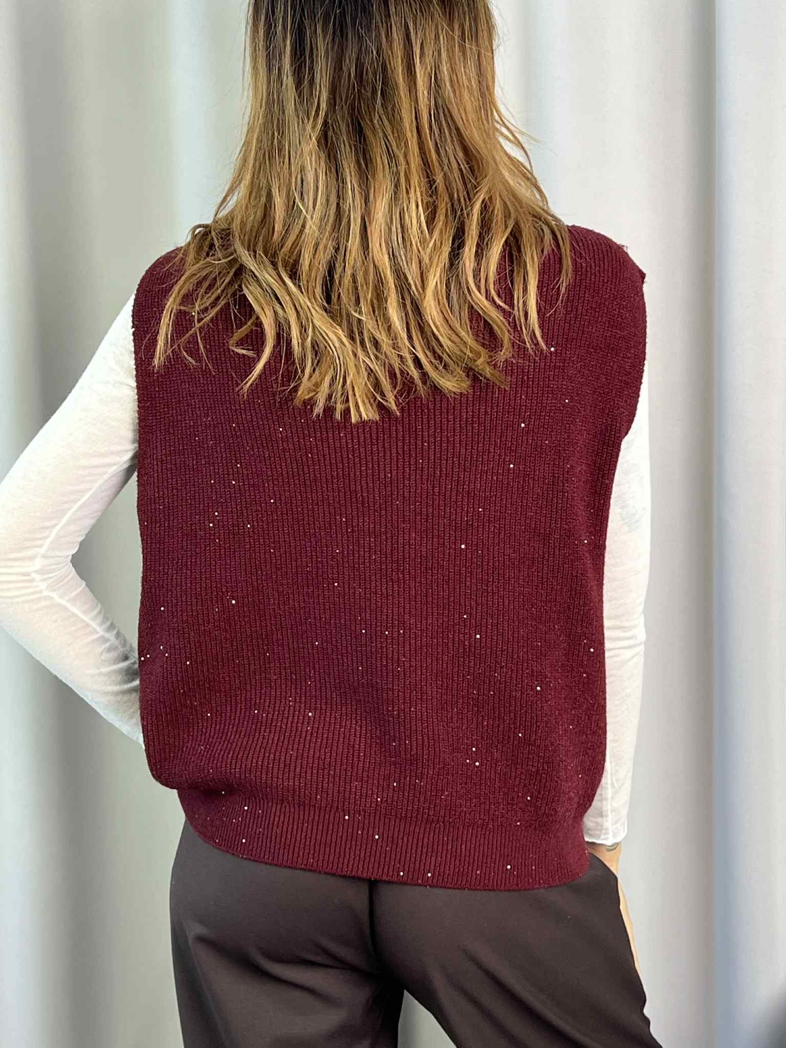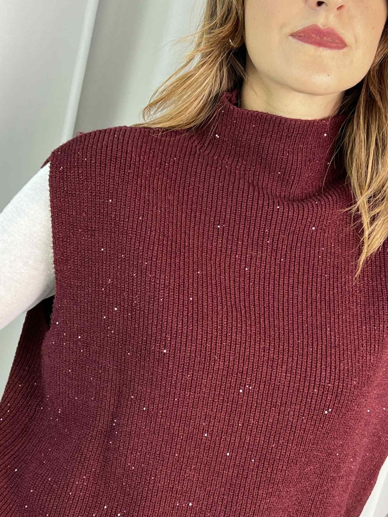 Gilet mezzo collo con micro paillettes HaveOne color Bordeaux.