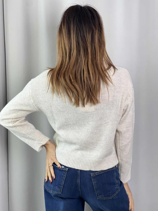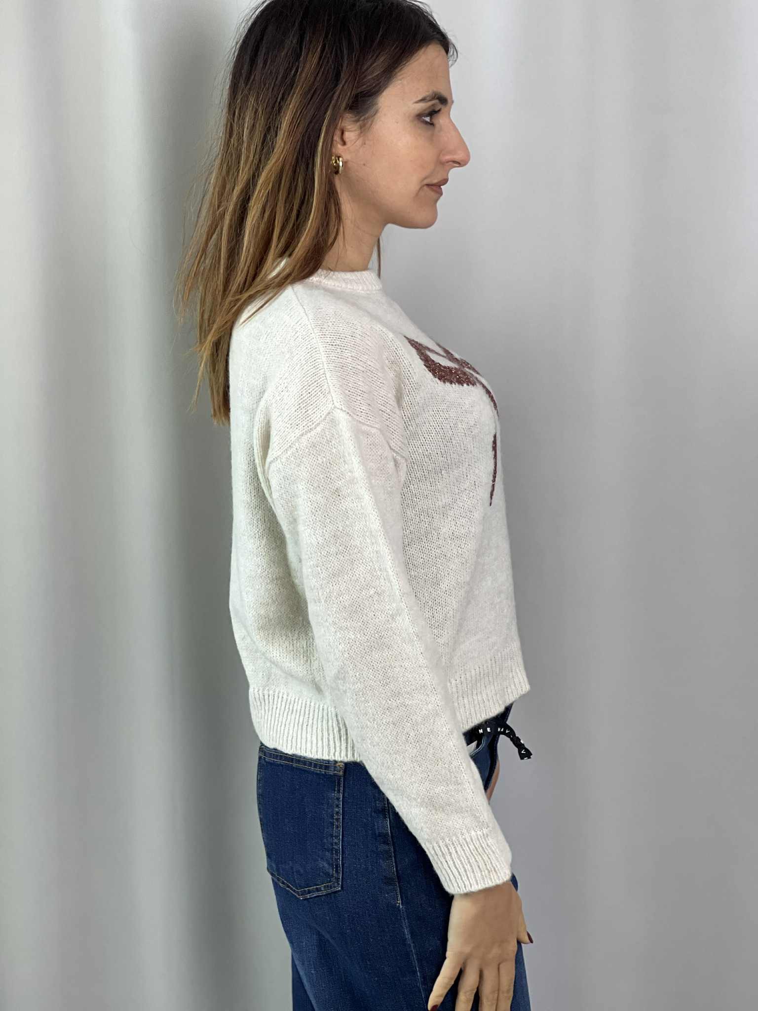 Maglia girocollo fiocco lurex Susy Mix color Crema.