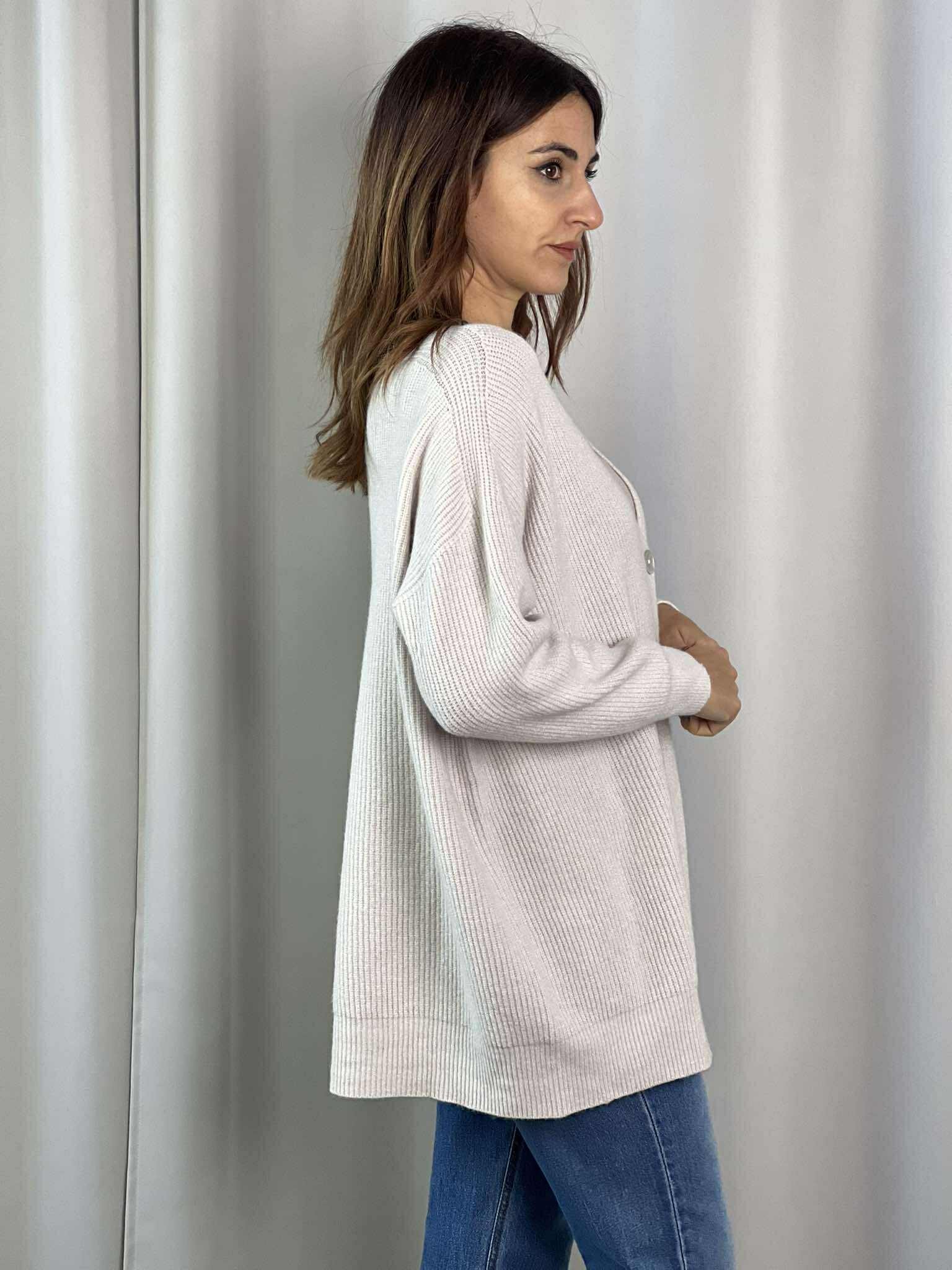 Cardigan a 5 bottoni Susy Mix color avorio.