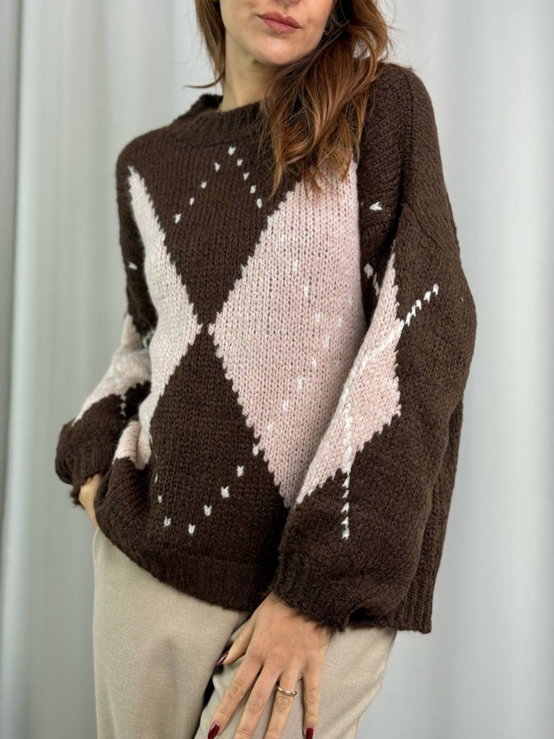 Maglia girocollo a rombi Susy Mix color moro-rosa.