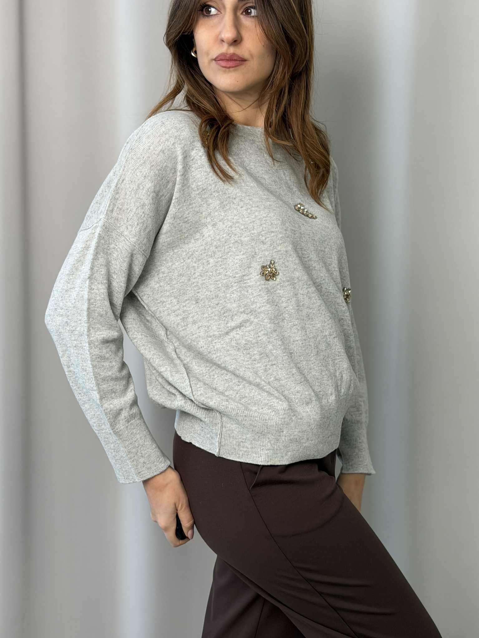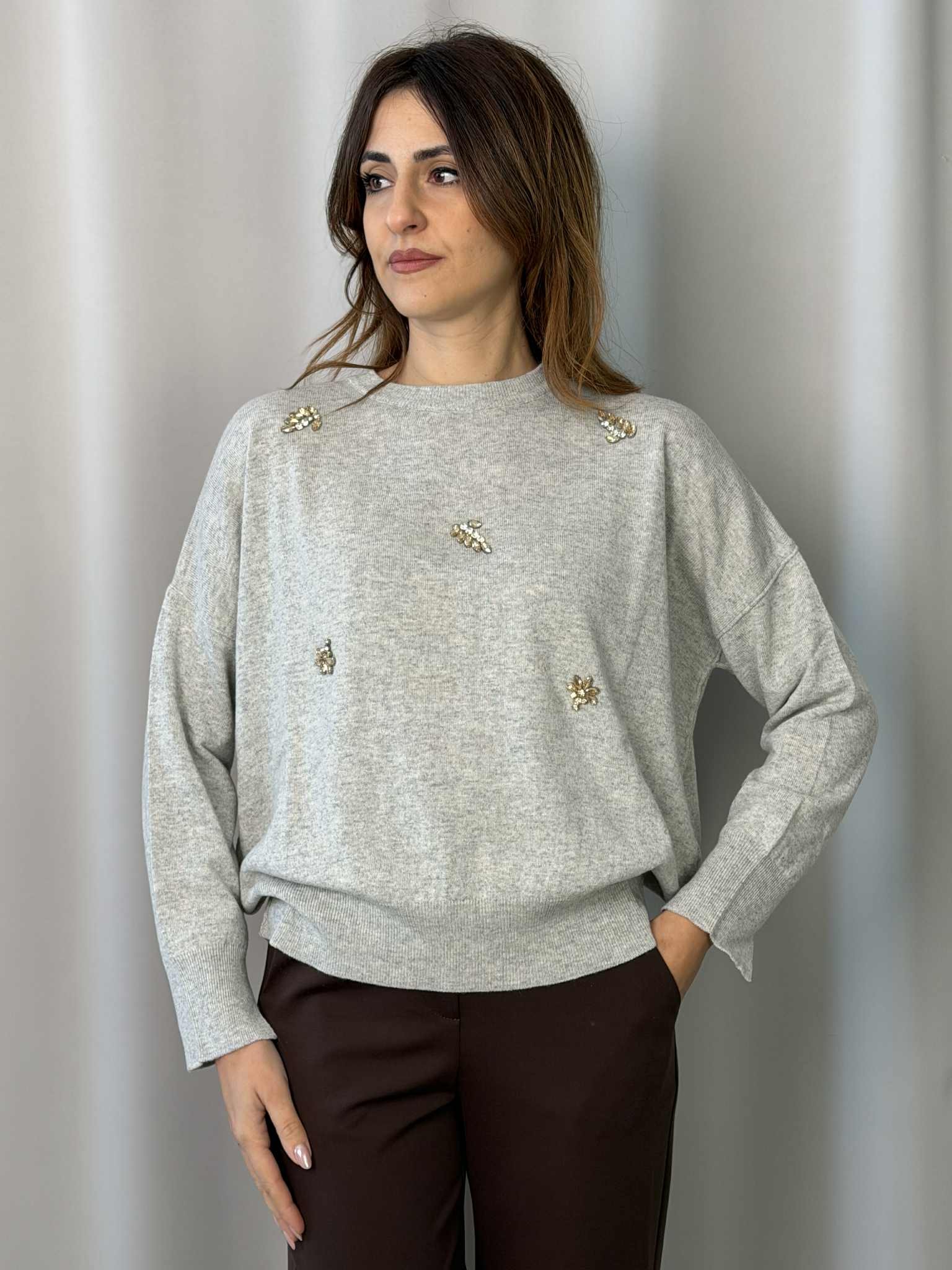 Maglia girocollo con applicazioni Tensione In color Grigio.