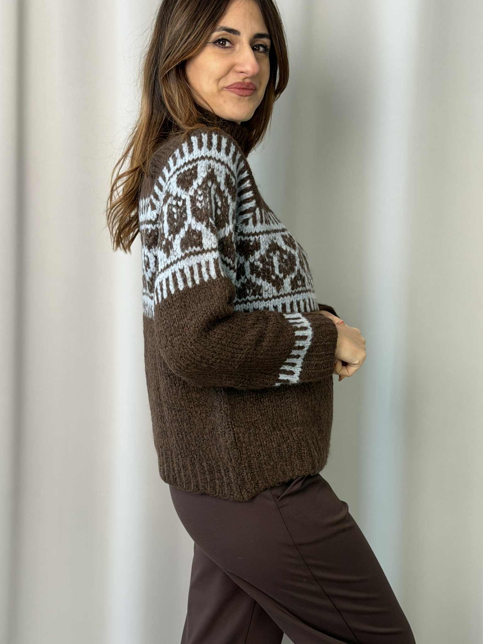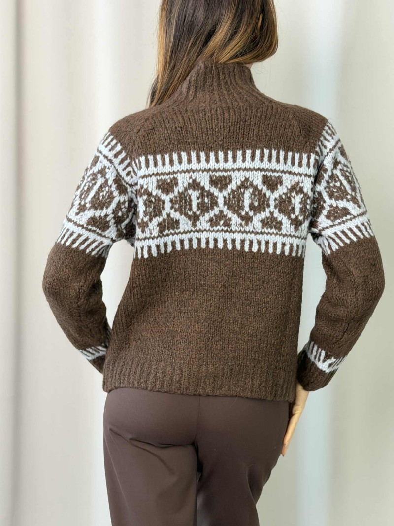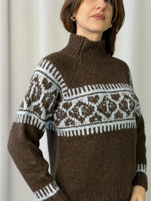Maglia intarsio a collo alto SuSyMix color Moro.