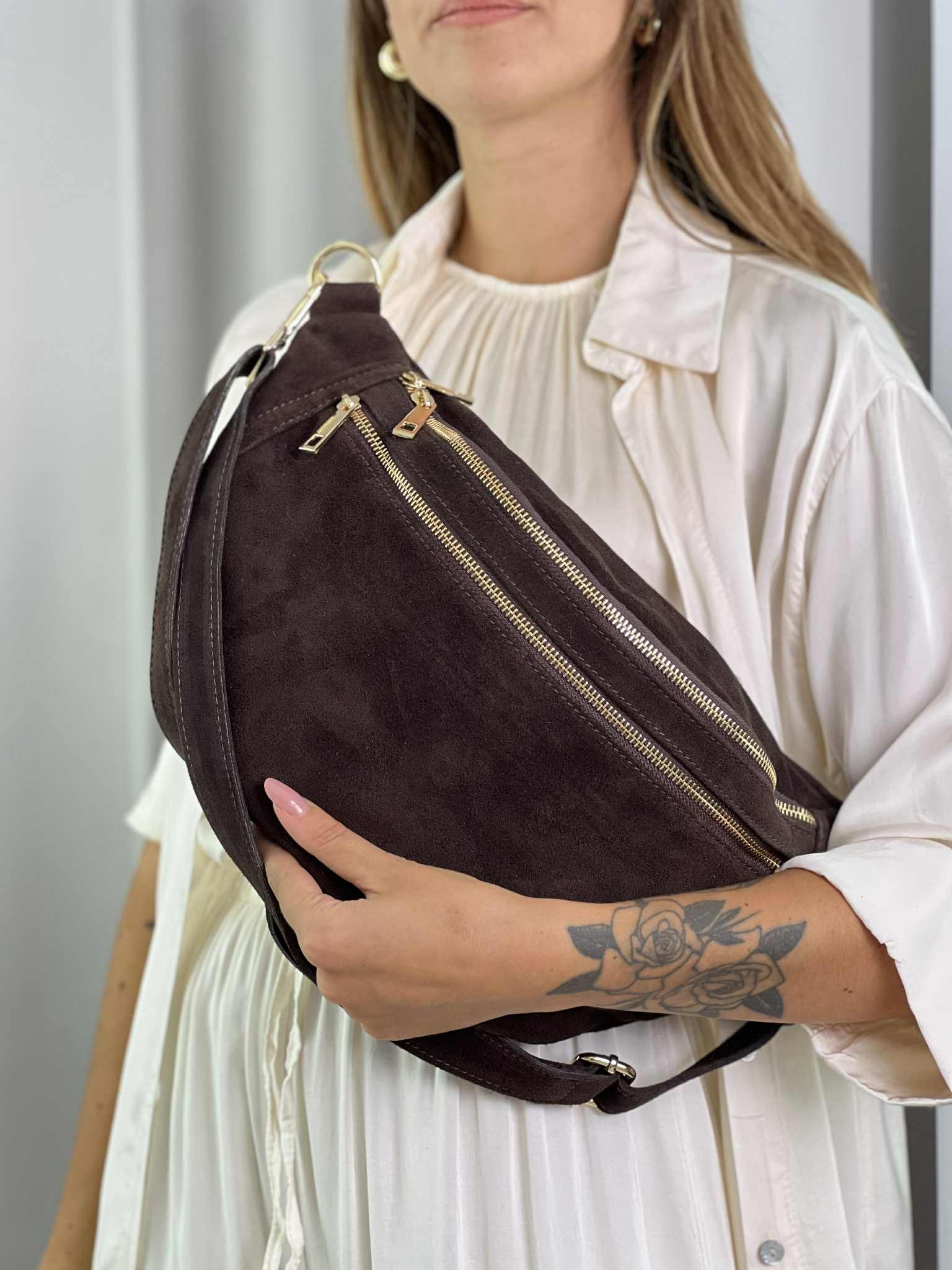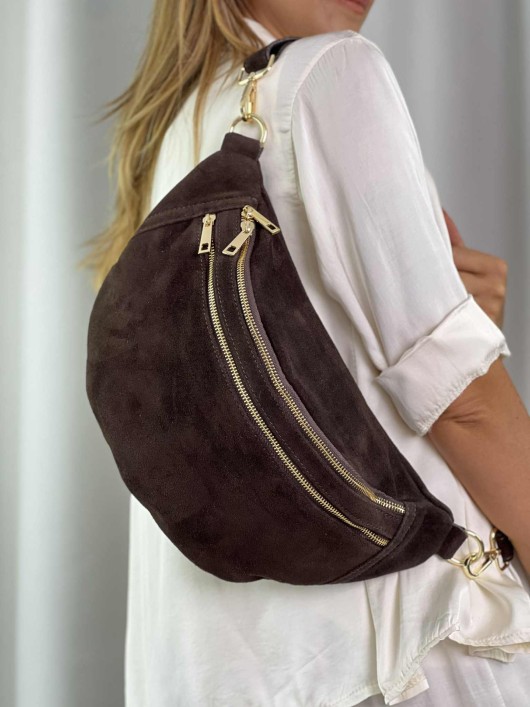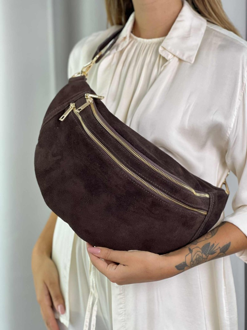 Marsupio grande in camoscio color TestaMoro.