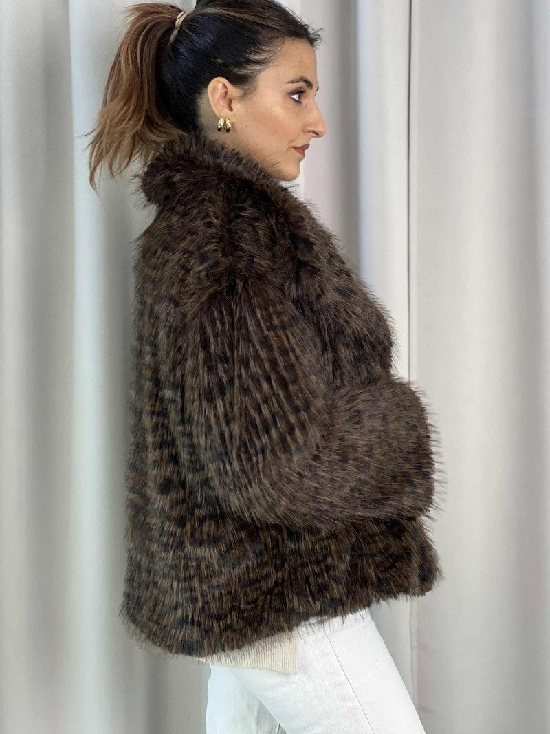 Cardigan a righe Susy Mix color marrone ed arancio.