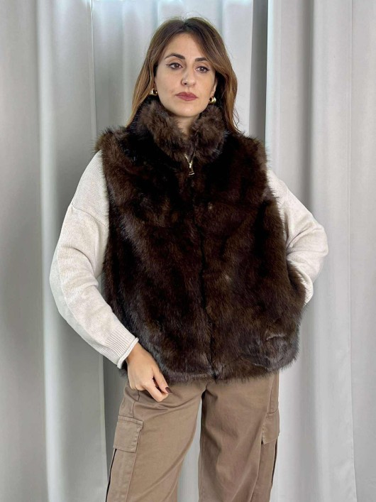 Cardigan a righe Susy Mix color marrone ed arancio.